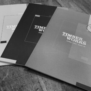We presented a variety of logo designs, initially that played on the ‘timber’ theme and some that had a more historical feel, as well as a selection that were inspired by the character of the surrounding area of Romsey. Our team went through the usual process of tweaking the details, size and shape until we arrived at the chosen logo – A simple, type led identity, inspired by the Romsey ‘R’ sculpture that sits close to Timber Works on Mill Road.