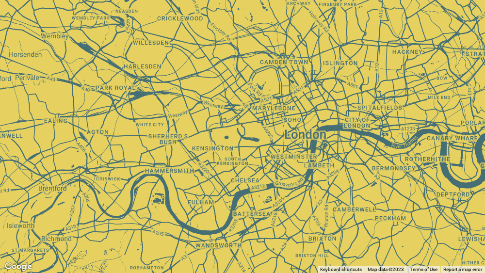 What’s good is that they are dynamic. That means, by using a style, we can have live maps that look great.  See this simple example below. It’s an on-brand map, with useful features (like pop ups) but most importantly it uses live and up to date Google Maps so people can zoom in and out to find the references points that matter to them.