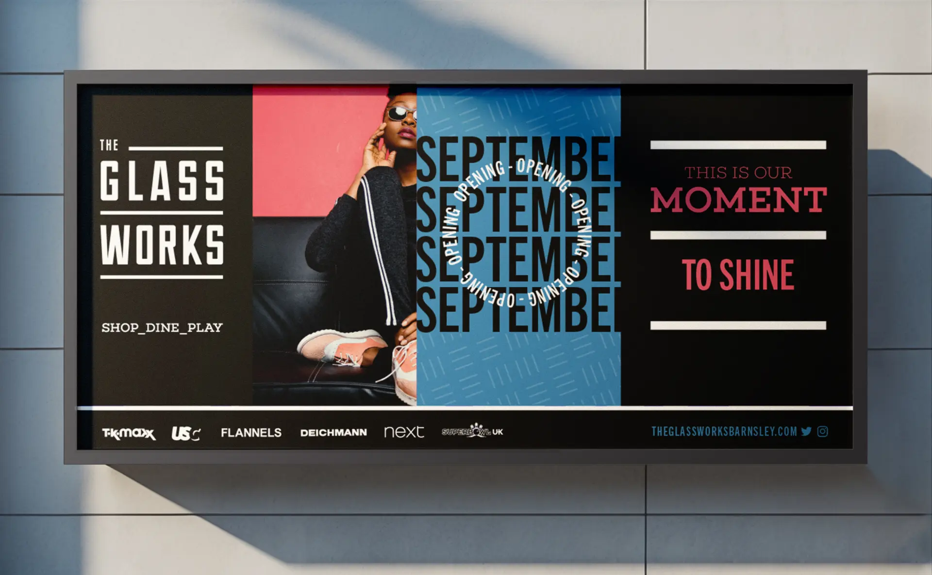 Working with Queensberry, DS.Emotion have embarked on the brand development for The Glass Works, a retail and leisure destination, which is set to be Barnsley’s Town Centre go to destination. But it’s so much more than that. It’s being developed with community spirit at its heart with a local library, new facilities and a welcoming public realm on the horizon.