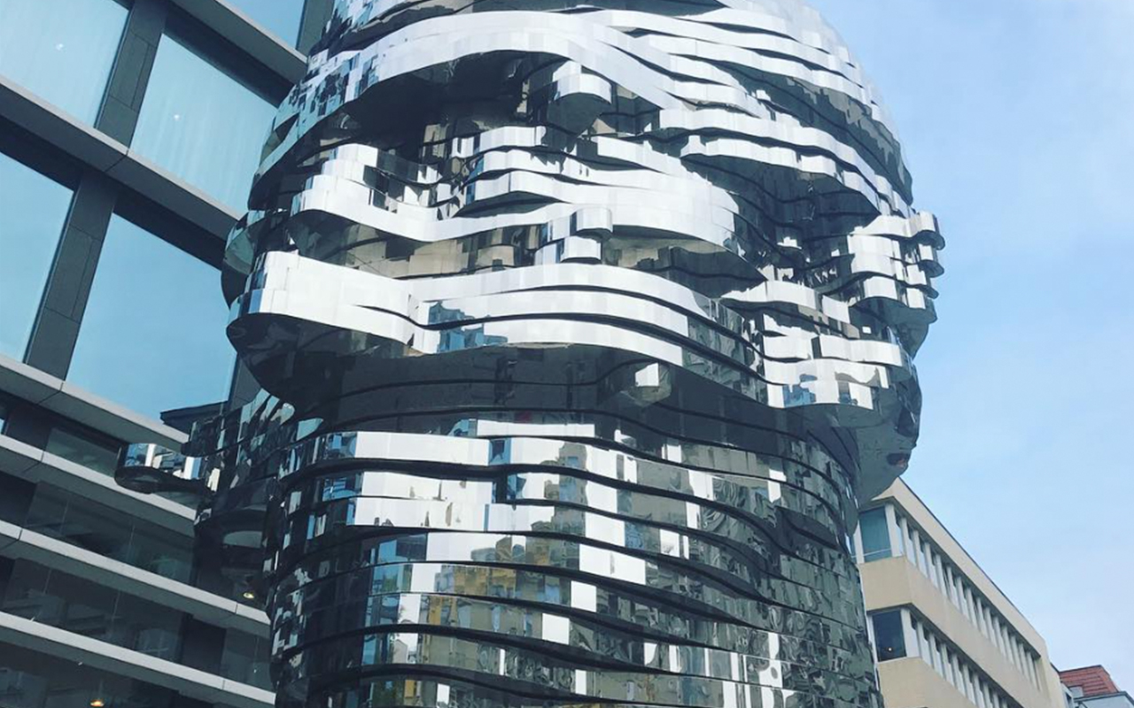 Beth spotted Franz Kafka’s rotating head mural in Prague. Controversial artist David Cerny created the impressive 42-layer sculpture.